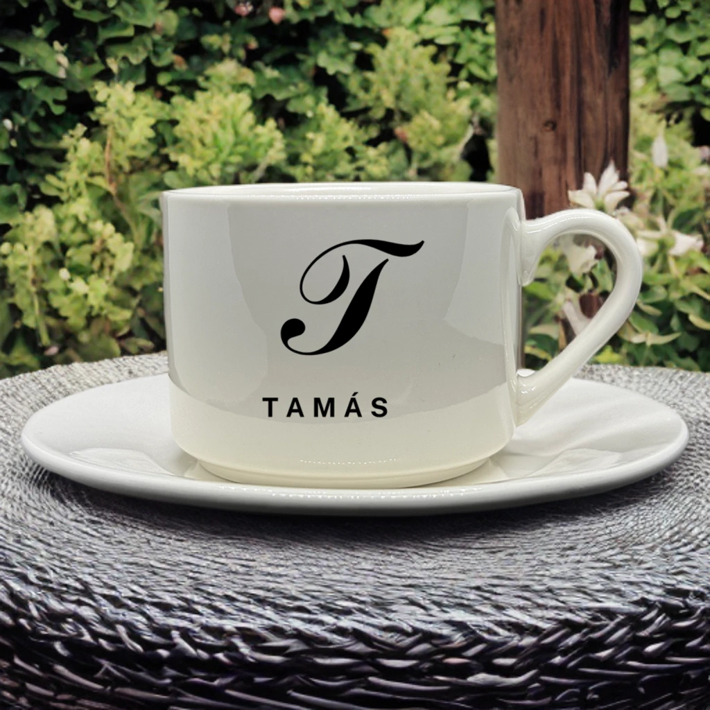 Egyedi névvel kérhető kávéscsésze tányérral